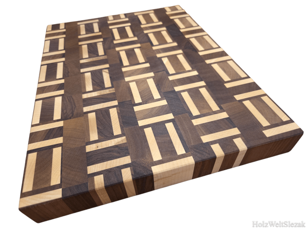 Das Hirnholz-Schneidebrett »Der Kontrast-Meister« ist ein Statement für jede Premium-Küche. Gefertigt aus der faszinierenden Kombination von dunklem Amerikanischem Nussbaum (Walnuss) und hellem Ahornholz (Maple), bietet dieses massive Stirnholz-Brett eine einzigartige Ästhetik und kompromisslose Performance.