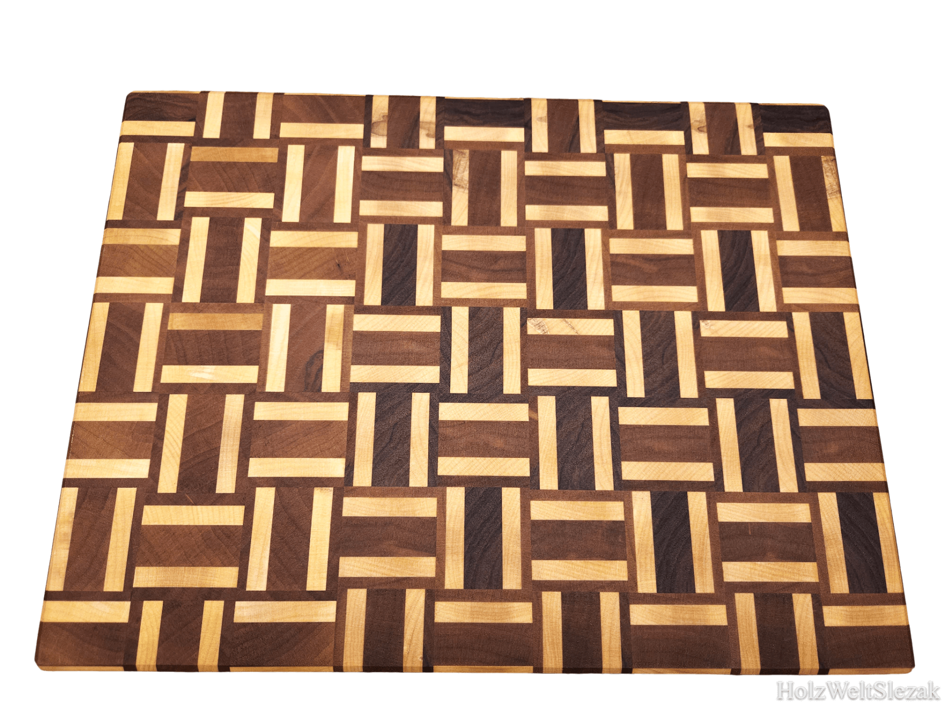 Exklusives Hirnholz-Schneidebrett »Der Kontrast-Meister III« (Nussbaum & Ahorn) – Flechtmuster & Gravur